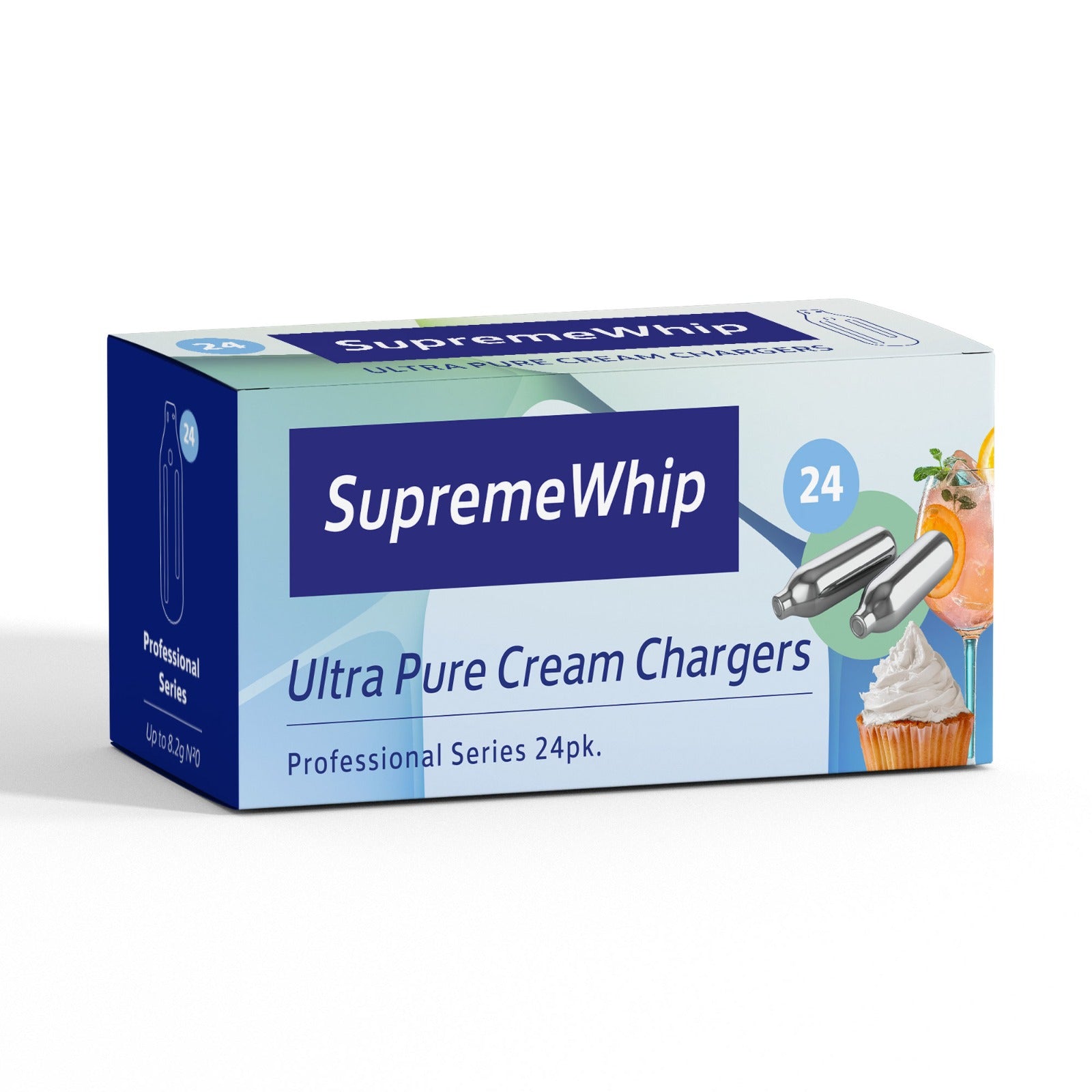 Save money and time with our new whipped cream charger product which contains more nitrous oxide! Contains 8.2 g of 100% pure culinary-grade gas. SupremeWhip Professional Chargers offer higher qualities of N2O propellant to ensure the best results, every time.